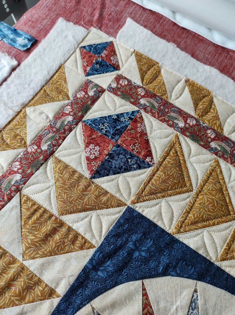 Long arm quilt service voor het custom doorquilten van jouw top. Freemotion of Ruler quilten. In de slideshow hieronder zie je voorbeelden van wat er kan.